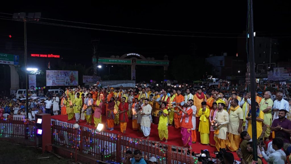 रायपुर। स्वतंत्रता दिवस की पूर्व संध्या पर रायपुर के गुढ़ियारी स्थित भारत माता चौक पर एक भव्य और भावनात्मक आयोजन हुआ। रायपुर पश्चिम के विधायक राजेश मूणत की अगुवाई में आयोजित ‘भारत माता की आरती’ में हजारों की संख्या में लोगों ने भाग लिया। यह आयोजन राष्ट्रभक्ति, शहीदों के सम्मान और राष्ट्रीय एकता के प्रति जनभावना का प्रतीक बन गया।