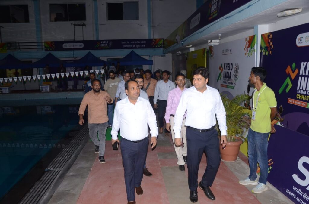 रायपुर। कलेक्टर डॉ. गौरव सिंह ने आज देर रात तक खेलो इंडिया ट्राइबल गेम्स के आयोजन की तैयारियों का जायजा लेने जिले के विभिन्न खेल मैदानों एवं अंतरराष्ट्रीय स्विमिंग पूल का निरीक्षण किया। उन्होंने बैठक व्यवस्था, कुर्सियां, शौचालय, पेयजल, एम्बुलेंस, निर्बाध विद्युत व्यवस्था तथा मच्छरों एवं कीट से बचाव हेतु फॉगिंग सहित अन्य आवश्यक व्यवस्थाओं की समीक्षा की और आवश्यक निर्देश दिए।