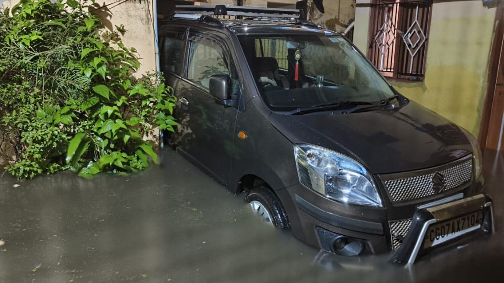 रायपुर। राजधानी में रातभर बारिश से प्रोफेसर कॉलोनी समेत निचली बस्तियों में जलभराव से परेशान लोगों ने आज सुबह नेशनल हाईवे पर चक्काजाम कर समस्या का स्थायी समाधान करने की मांग की. चक्काजाम के बाद रायपुर महापौर मीनल चौबे और आयुक्त विश्वदीप ने पार्षदों और जोन अधिकारियों के साथ जोन 5 और जोन 6 क्षेत्र में कुकरीपारा, प्रोफेसर कॉलोनी, परशुराम नगर सहित अन्य निचले क्षेत्रों में पहुंचकर जलभराव की समस्या का जायजा लिया.