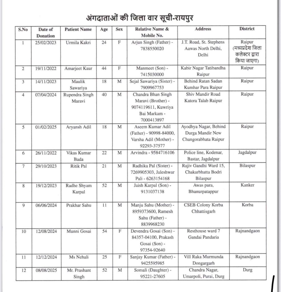 स्वतंत्रता दिवस पर अंगदान करने वालों के परिजनों को किया जाएगा सम्मानित, देखें लिस्ट…