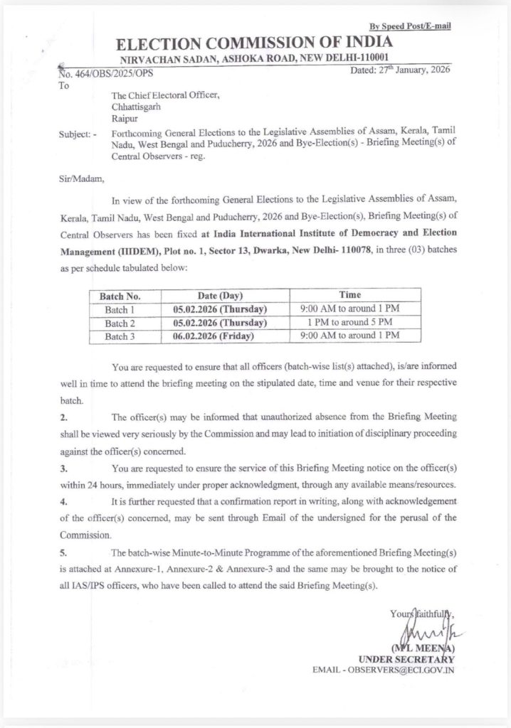 रायपुर। असम, केरल, तमिलनाडू, पंश्चिम बंगाल और पुडुचेरी में आगामी विधानसभा चुनाव को लेकर छत्तीसगढ़ के IAS और IPS अफसरों को ऑब्जर्वर बनाया गया है. इनमें 25 आईएएस और 5 आईपीएस अफसरों के नाम शामिल हैं.